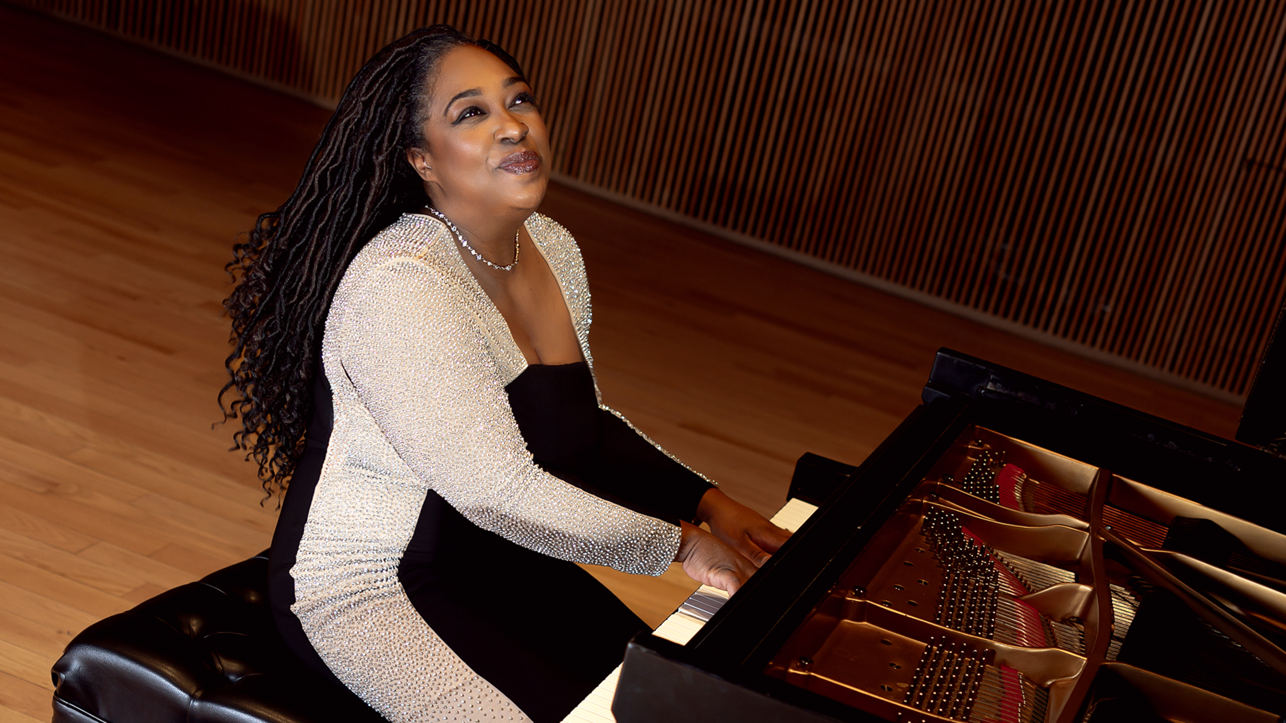 Ms. Cann performs Piano Sonata in E minor by Florence Price as guest host for From the Top; Interlochen Center for the Arts, March 2019